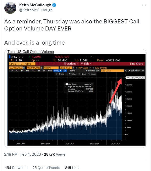 https://www.marketwatch.com/story/mr-market-is-a-d..."Lastly, he notes violent speculation in call options ' the right to buy an asset at a future time at a specific price, often viewed as bullish ' that has coincided with topping action for stocks in the past. He also noted that short sellers capitulated last week, resulting in the biggest amount of short covering in a decade. "There are simply too many made up narratives on the markets ' in an attempt to explain the daily moves,' says Kass. 'They are a reaction to the notion that 'price is truth,' which ends up influencing sentiment and clouding the facts."